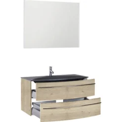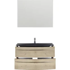 Sanox Badmöbel-Set Seville 100 Cm Naturstein Waschbecken 2 Hahnlöcher Inkl. Spiegelschrank Black Oak