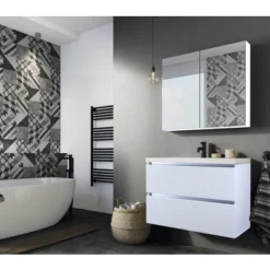 | Komponentenmasse | Waschtischunterschrank 100x55x40 cm, Waschtisch 101x4x41 cm, Lichtspiegel 100×60 cm (B x H x T) |